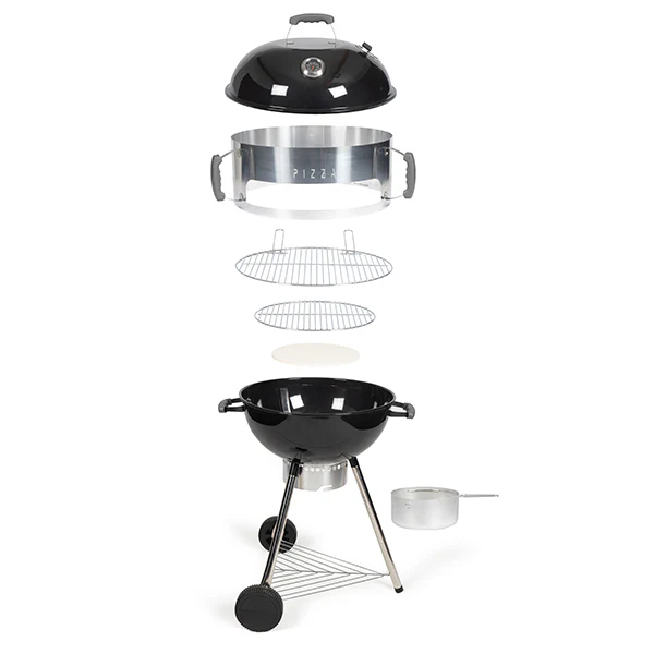 Transformez votre barbecue à charbon en four à pizza en rajoutant simplement un anneau à pizza avec le système adaptable du barbecue four à pizza Livoo. L’appareil fonctionne comme un barbecue classique, avec du charbon, et est doté d’un bac récupérateur de cendres pour un entretien facilité. Un thermostat est également placé dessus, en °C et en °F, pour surveiller la cuisson et faire cuire vos pizzas, grillades, saucisses ou pièces de viandes avec la température idéale.