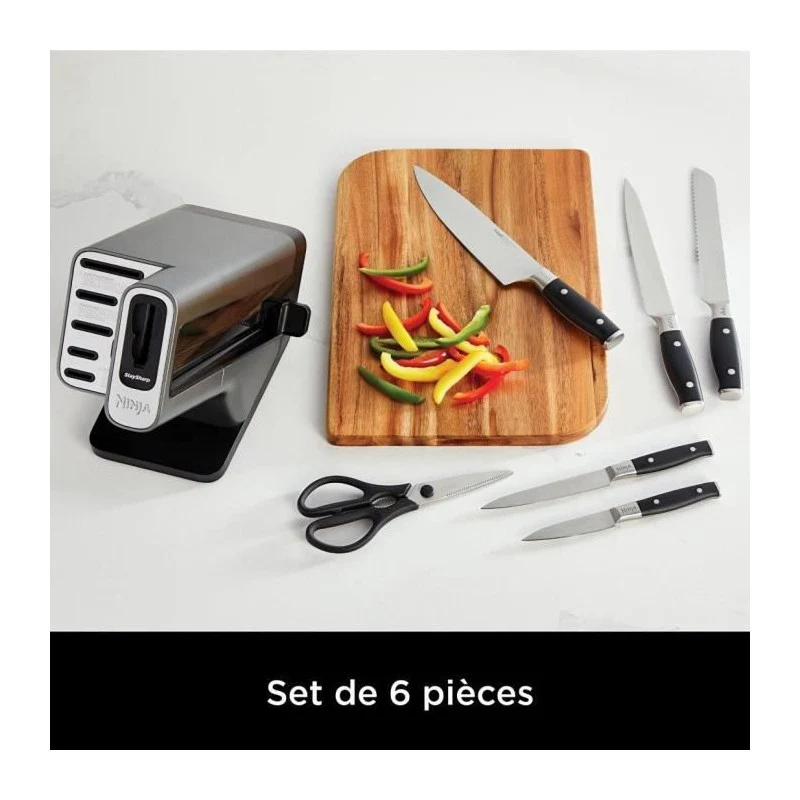 Bloc-couteaux – Ninja Foodi – Staysharp K32006eu – Avec Affûteur – Ensemble De Couteaux – 6 Pieces Aiguisées – Noir Ninja