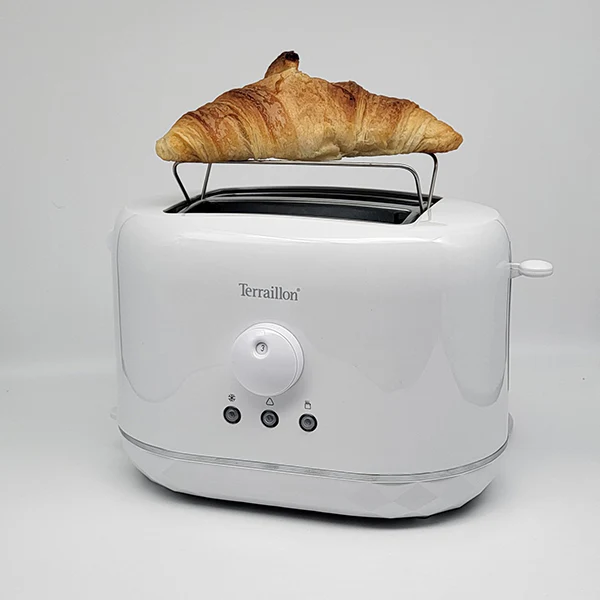 Et si jamais vous avez besoin d’interrompre le processus en cours, le toaster diamant est équipée de la fonction stop/éject, qui vous permet d’arrêter immédiatement le grillage et d’éjecter les toasts en un seul geste. Nous sommes convaincus que vous apprécierez également le support viennoiserie intégré ! Celui-ci est parfait pour réchauffer croissants, pains au chocolat et bien d’autres viennoiseries.