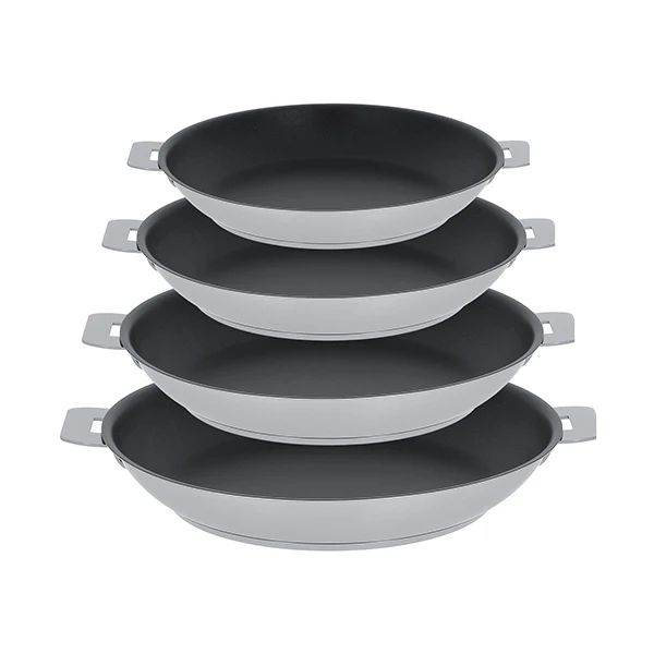 Lot 4 poêles inox antiadhérentes Strate sans manche 20, 24, 26 et 28 cm Cristel