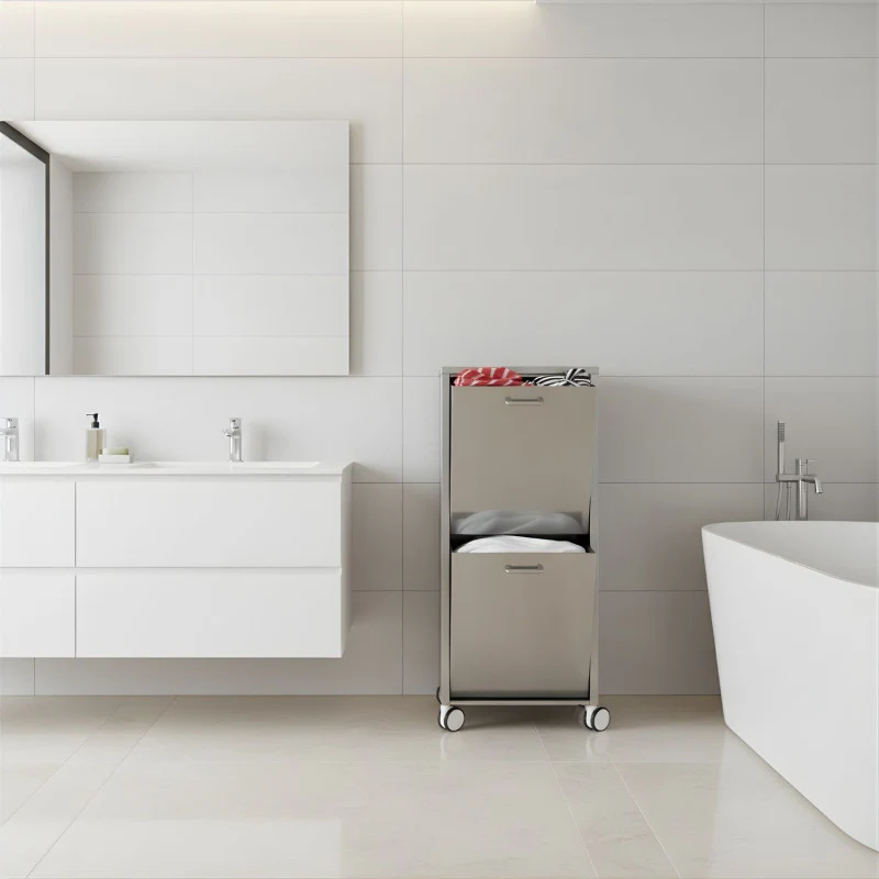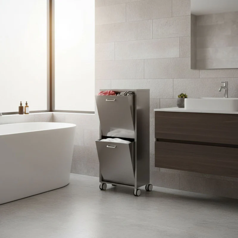 Panier à linge en acier inoxydable avec 2 compartiments à basculement, sur roues, tango Don Hierro