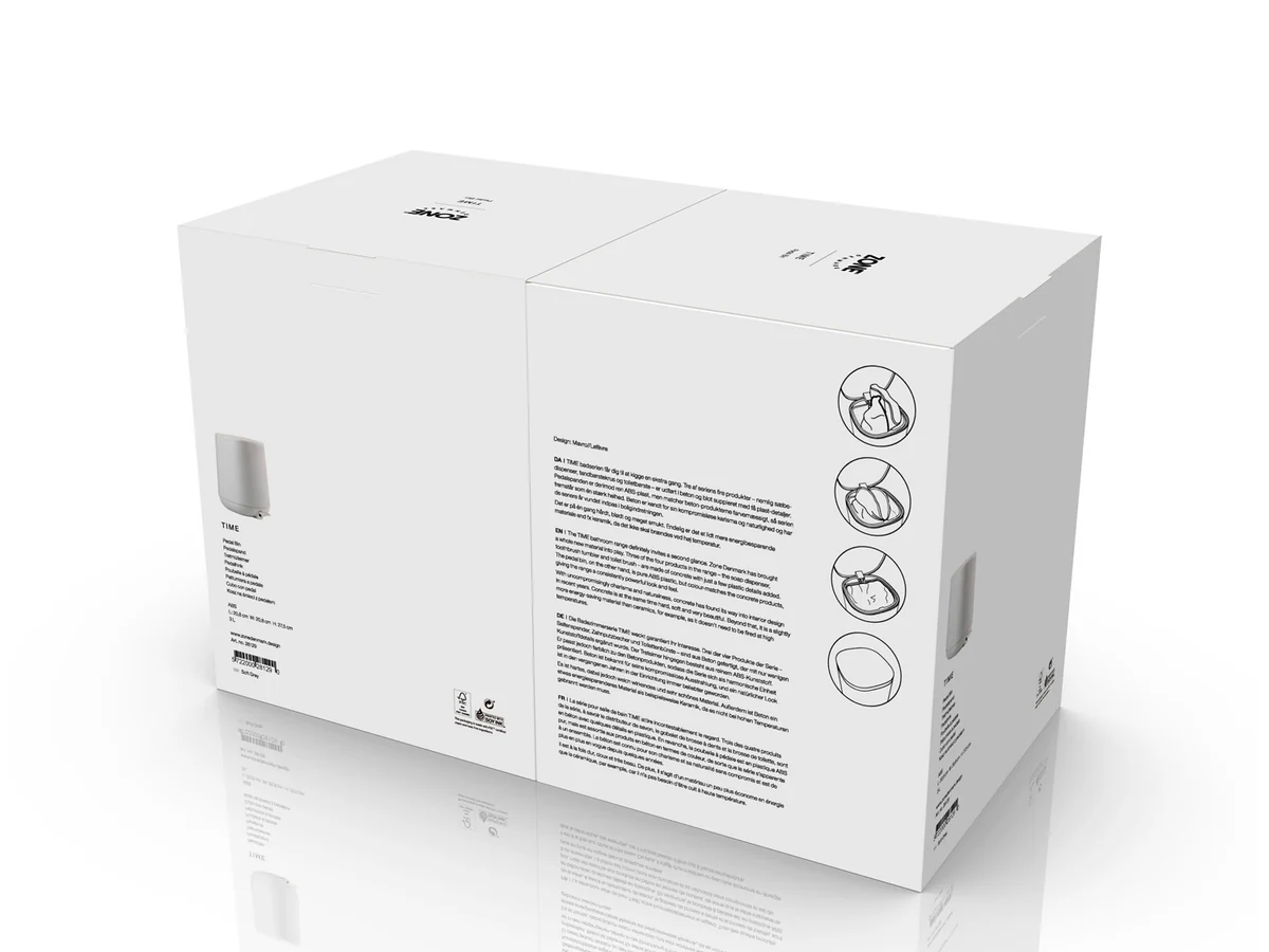 La série de salle de bain TIME attire incontestablement le regard. Trois des quatre produits de la série, à savoir le distributeur de savon, le gobelet de brosse à dents et la brosse de toilette, sont en béton avec quelques détails en plastique. En revanche, la poubelle à pédale est en plastique ABS pur, mais est assortie aux produits en béton en termes de couleur, de sorte que la série apparaît comme un ensemble. Le béton est connu pour son charisme et sa naturalité sans compromis et est de plus en plus en vogue depuis quelques années. Il est à la fois dur, doux et très beau. De plus, il s’agit d’un matériau un peu plus économe en énergie que la céramique, par exemple, car il n’a pas besoin d’être cuit à haute température.