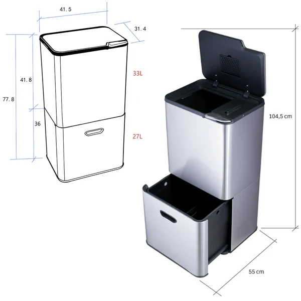 Hauteur poubelle ouverte 104,5 cm