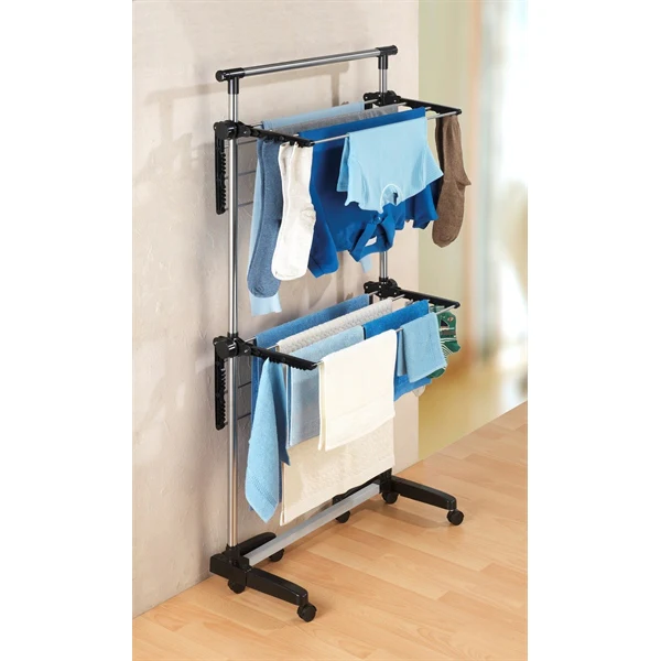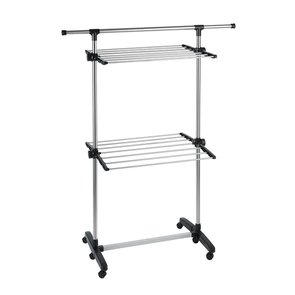 Indispensable pour les petits espaces, ce séchoir à linge gain de place en acier inoxydable et modulable va vous permettre d’accueillir une quantité impensable de linge à la fois sans encombrer votre lieu de vie! Offrant une importante surface d’étendage de 11 mètres, ce séchoir à linge dispose de 2 niveaux ainsi que de 14 barres larges.